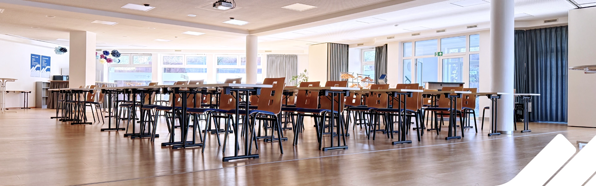 Unser Konferenzbereich bietet auf rund 342 m² Platz für Veranstaltungen mit bis zu 150 Personen und eignet sich ideal für Tagungen, Workshops, Vorträge oder Seminare. Die Räumlichkeiten lassen sich dank flexibler Trennwandsysteme in drei separate Bereiche (106 m², 131 m², 105 m²) unterteilen und individuell an Ihre Anforderungen anpassen. Die technische Ausstattung umfasst moderne Beschallungs- und Präsentationstechnik und unterstützt einen reibungslosen Ablauf Ihrer Veranstaltung. Direkt vor der Tür stehen ausreichend PKW-Stellplätze zur Verfügung, sodass eine bequeme Anreise für Ihre Gäste gewährleistet ist. Auf Wunsch unterstützen wir Sie auch bei der Verpflegung: Das Catering kann über das IAB organisiert oder über unsere Partner vermittelt werden.