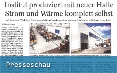 Weimar. Das schönste Geschenk zum runden Geburtstag machte sich das Institut für Angewandte Bauforschung (IAB) gestern selbst: Schauplatz für das 25. Firmenjubiläum war die neue Versuchshalle namens „Technikum II“, die es dem Betrieb ermöglichen wird, seine Aktivitäten künftig ausschließlich auf dem Instituts-Campus in Tröbsdorf zu konzentrieren. (TA/TLZ Weimar, 13.06.2017)…