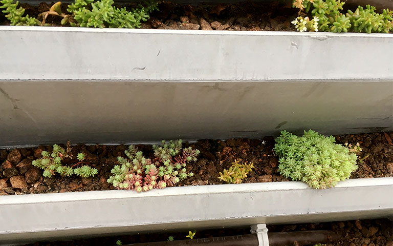 - pflegeleichte, winterfeste und wartungsarme Begrünung, die eine regelmäßige, automatisierbare Bewässerung und Unterhaltspflege voraussetzt