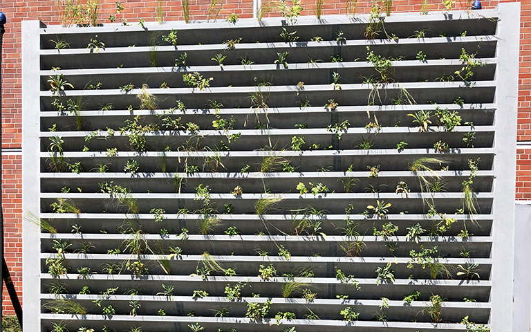 Grundstücksbegrünungen sind im urbanen Raum nur begrenzt realisierbar. Daher werden Dächer und zunehmend auch Fassaden begrünt. In einem interdisziplinären Forschungsprojekt wurde ein filigranes Betonfertigteil aus carbon- und faserbewehrtem UHPC zur vertikalen Fassadenbegrünung entwickelt.