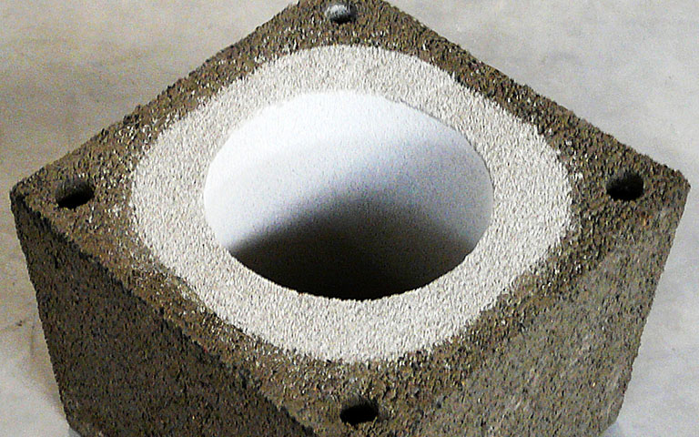 Ökologisches Bauen ist immer dann erfolgreich, wenn Architektur und Bauphysik aufeinander abgestimmt sind. Durch den gezielten Einsatz funktionsintegrierender Bauelemente wie beispielweise Schornsteinen, die dämmende und tragende Materialien kombinieren, kann die Gebäudestruktur einen wesentlichen Beitrag zur Senkung des Energiebedarfs leisten. Derzeit erfordert die Produktion solcher zweischaliger Steine jedoch noch viel Zeit und bedarf einer hohen Lagerkapazität, da die Einzelkomponenten nacheinander mit entsprechenden Aushärtezeiten gefertigt und meist manuell nachbearbeitet werden müssen.