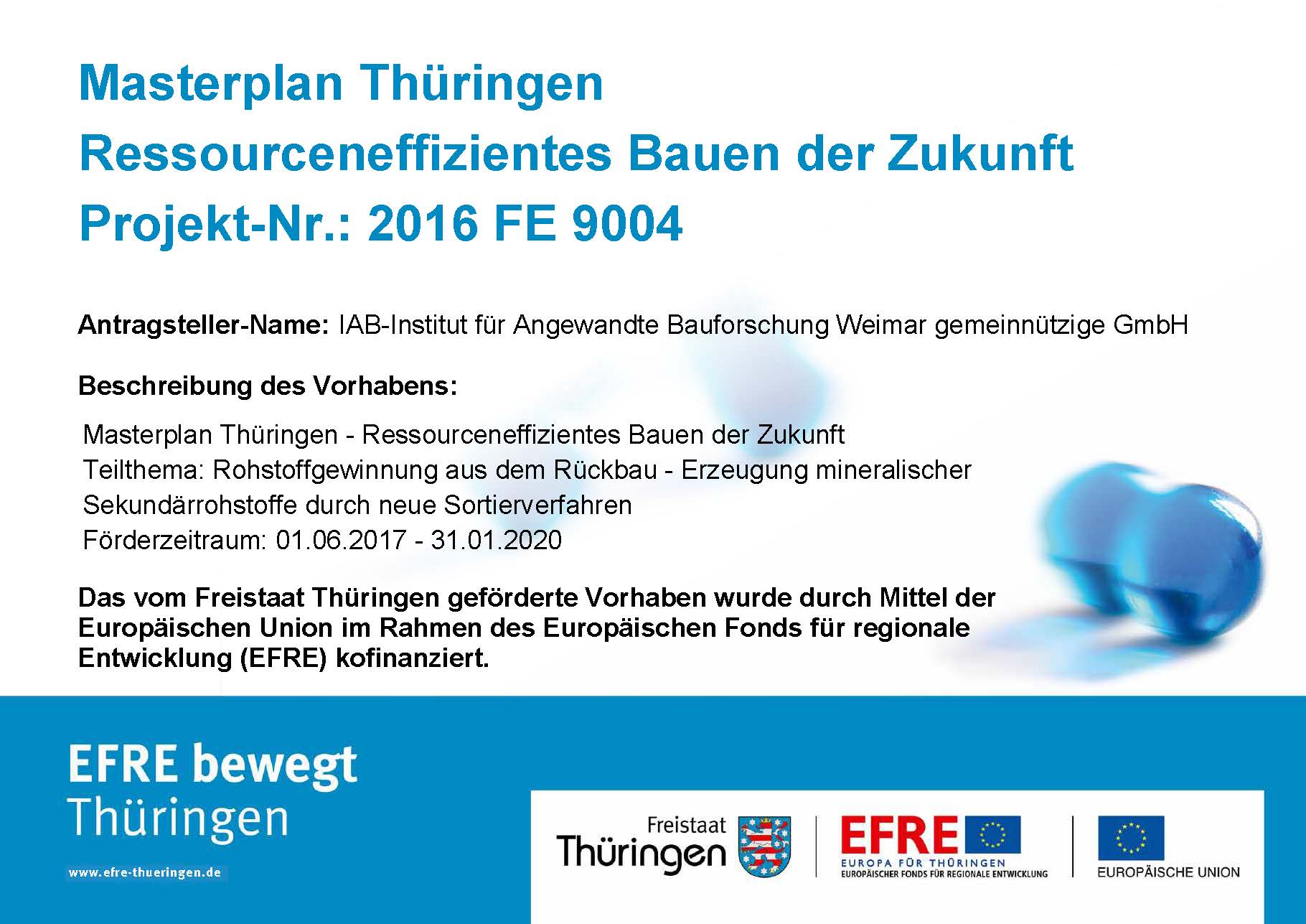 Plakat EFRE-Förderung Projekt 2016 FE 9004 Masterplan Thüringen
