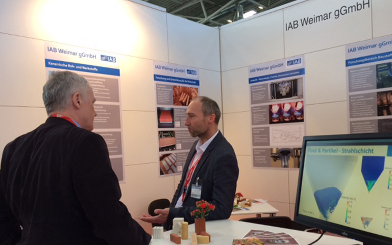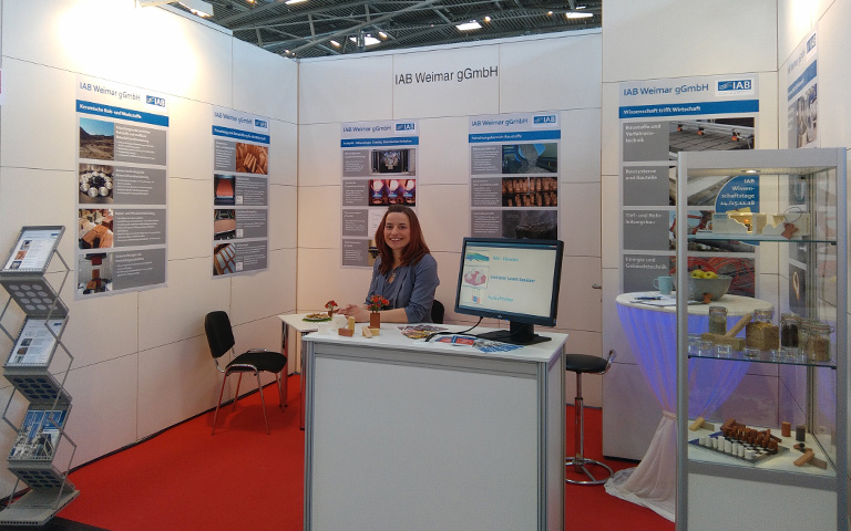 Auch das IAB Weimar war in München vertreten und präsentierte das Innovationspotenzial keramischer Roh- und Werkstoffe. Neben der Leistungsfähigkeit thermisch aktivierter Tonrohstoffe mittels unterschiedlicher Brennatmosphäre standen Lehmbaustoffe und deren Prüfung, mineralische Füllmaterialien für hochwärmedämmende Ziegel sowie die Erfassung des Schädigungsvorgangs keramischer Werkstoffe infolge zyklischer Frost-Tau-Belastungen per Dilatometrie im Fokus. Während der Messe konnten interessante Fachgespräche und vielversprechende Kontakte geknüpft werden. „Die ceramitec war eine großartige Gelegenheit, unseren Forschungsschwerpunkt Baustoffe und Verfahrenstechnik sowie das analytische Know-how einem fachspezifischen Publikum vorzustellen“, erklärte Katja Stanelle, Leiterin des Fachbereiches Keramische Roh- und Werkstoffe.