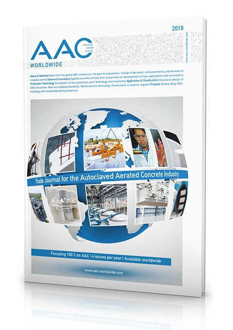 Ab September 2018 erscheint eine neue Fachzeitschrift für die internationale Porenbetonbranche: die AAC worldwide. Bisher waren Plattformen zur Diskussion und Verbreitung von Wissen über Porentbeton (engl. = Autoclave Aerated Concrete) nur begrenzt verfügbar. Denn dieser Baustoff ist im Gegensatz zu Stahl, Beton, Glas oder Kunststoff noch recht jung – birgt jedoch großes Potenzial. Nach Gesprächen mit Verbänden, Herstellern von Produktionsanlagen und Porenbetonbauteilen wurde der Bedarf eines Informations- und Austauschmediums für die Branche erkannt. Die Zeitschrift ist deshalb so konzipiert, dass sie die gesamte Wertschöpfungskette erfasst.