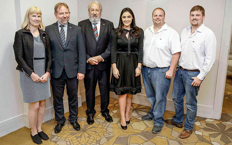 IAB-Delegation mit Projektleiterin Dr. Ingrid Lützkendorf und Institutsdirektor Dr. Ulrich Palzer, SISCOBRAS-Geschäftsführer Henrique Deboni, Carla Deboni sowie den Geschäftsführern der Galaxy Energy GmbH, Dieter und Manfred Schöll (v.l.n.r.)